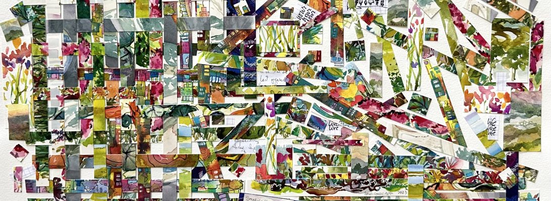 I’m thankful that the Cultural Center of Cape Cod presented an opportunity for me to review my work and make something out of my paintings that have snippets that I love but were flawed in other ways – saving the good parts and cutting out the rest is a valuable process.