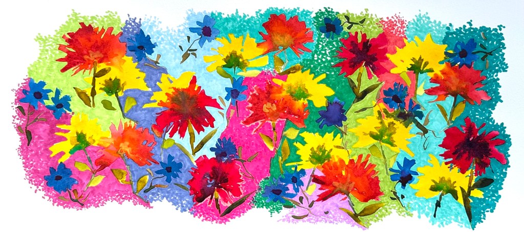 Watercolor + oil pastel
